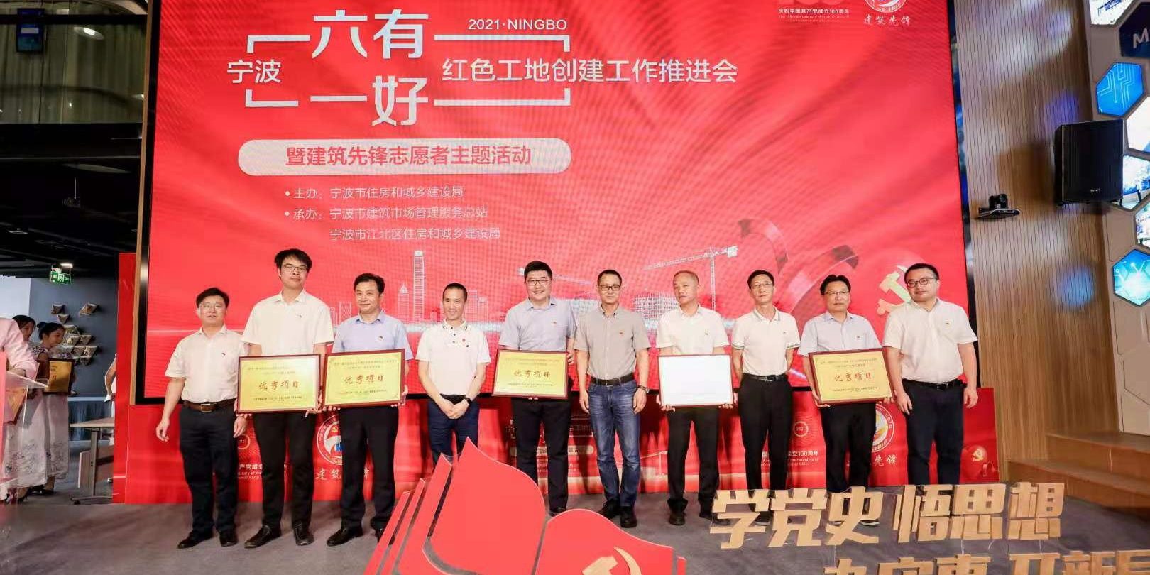 ? ? ? ?6月25日下午,寧波市建筑行業(yè)“六有一好”紅色工地創(chuàng)建工作推進會暨“建筑先鋒”志愿者主題活動在江北區(qū)文創(chuàng)港人才之家舉行。會上,我公司海曙區(qū)HS16-02-12地塊(寧波工業(yè)互聯(lián)網(wǎng)產(chǎn)業(yè)園)工程項目獲紅色工地創(chuàng)建優(yōu)秀項目榮譽表彰。