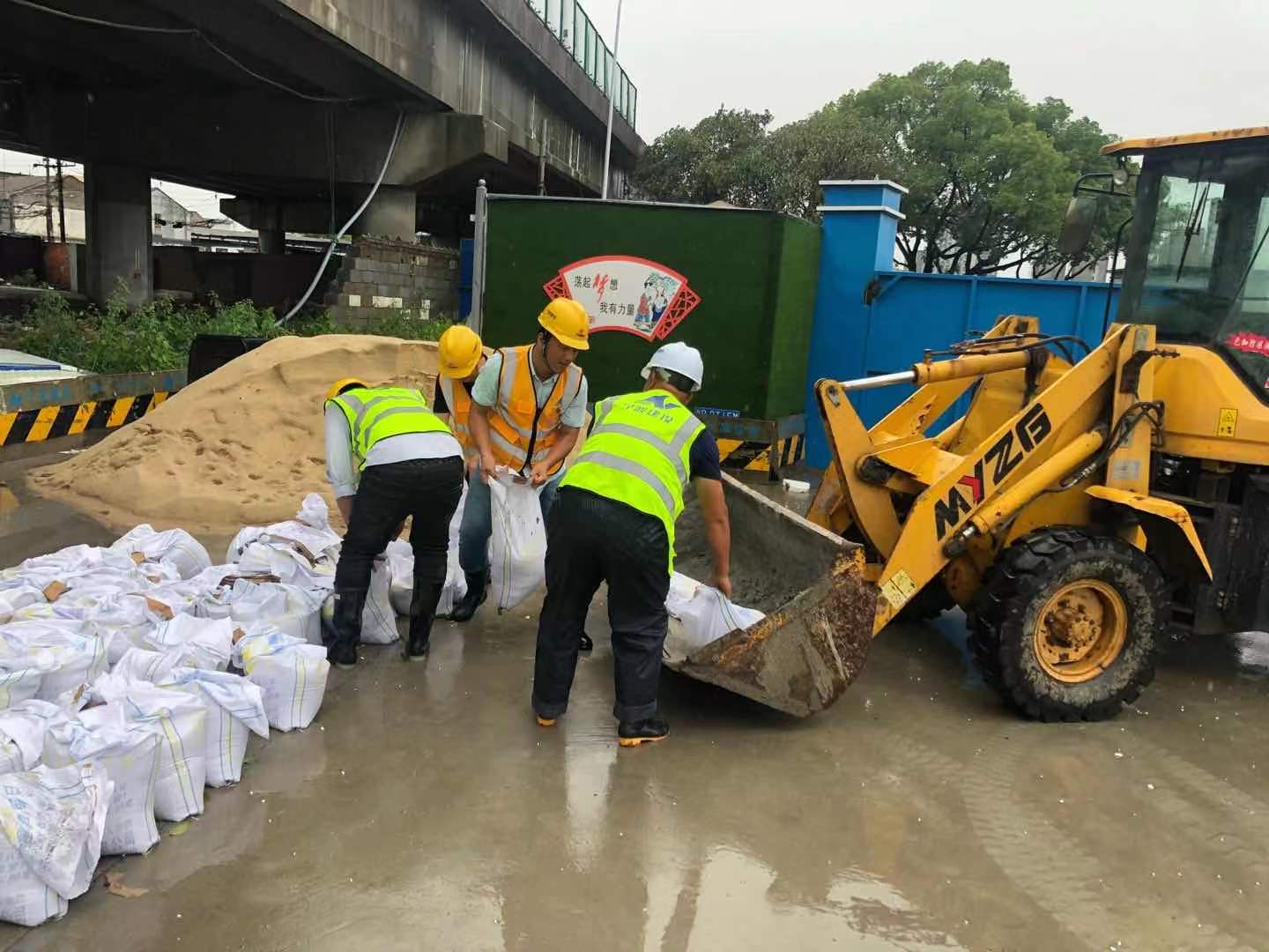 26日下午,隨著降雨量的持續(xù)增大,為避免段塘街道大河頭路部分村民民房洪水倒灌,鄞奉公園項目部主動出擊,一方面利用樹柵欄、警戒線、堆土方等所有能利用的手段封閉危險路段,另一方面項目經(jīng)理王祥強帶領(lǐng)10余名項目管理人員組成青年突擊隊冒雨在工地現(xiàn)場裝袋建筑沙子,裝運至各居民房門前修筑起防洪墻,盡可能減少洪災(zāi)造成的人員財產(chǎn)損失。“感謝你們,這樣我們就安心了”,村民對冒雨奮戰(zhàn)的搶險隊員們連聲道謝。
