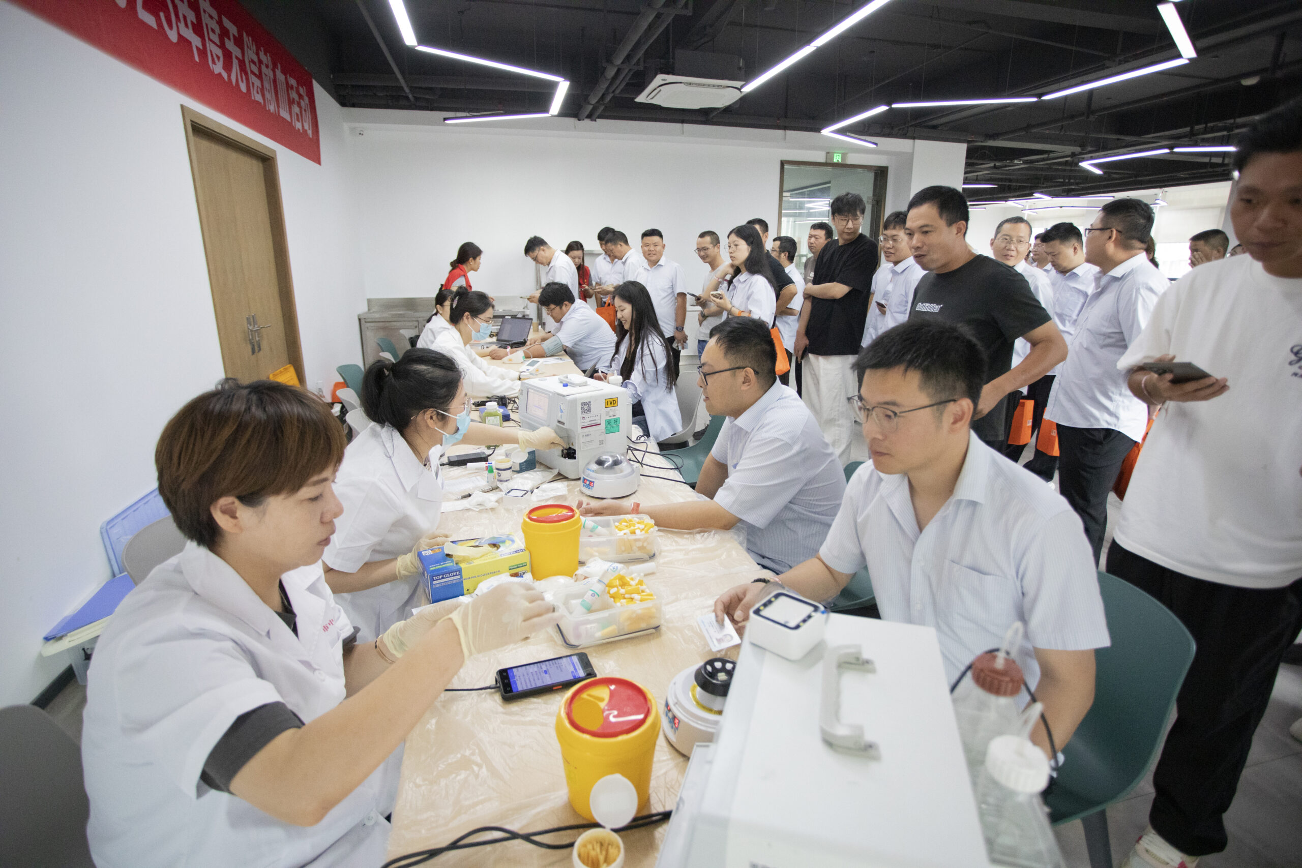 ? ? ? ?上午七點半,報名獻血的職工陸續(xù)來到現(xiàn)場登記,前往3樓食堂井然有序地排隊做獻血前的檢驗,現(xiàn)場氣氛熱烈而有序,獻血職工工作人員的指引下,有條不紊地進行登記、檢驗 、采血等流程。